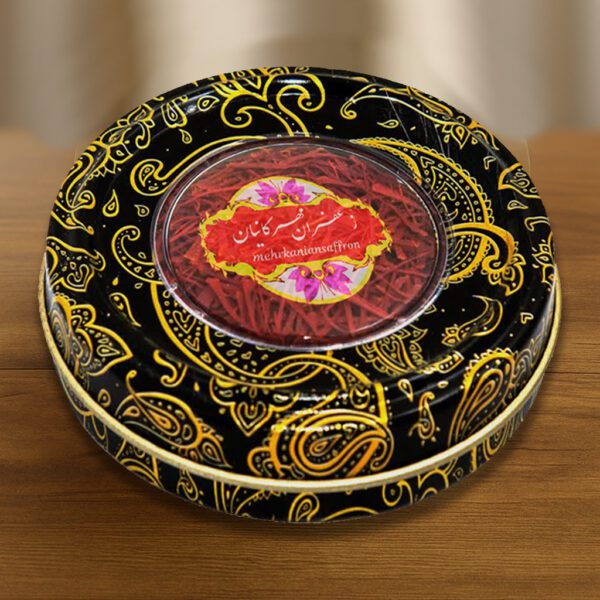 - بستهبندی: قوطی فلزی با طرح خاتمکاری سنتی
