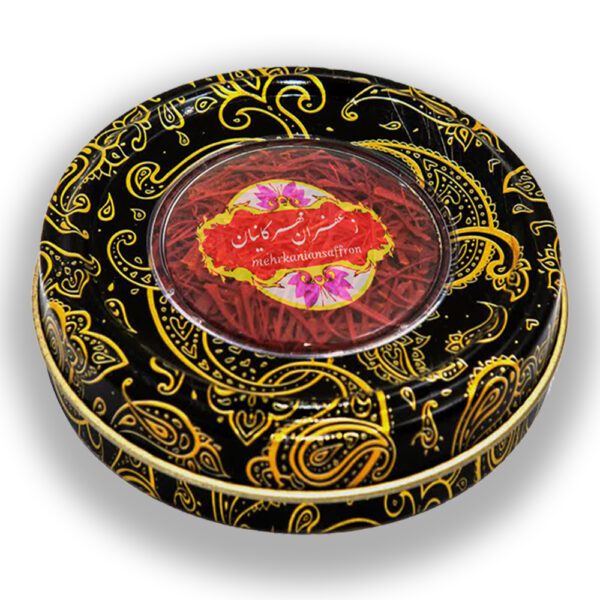 زعفران سرگل ممتاز در قوطی فلزی با طرح خاتمکاری سنتی، ترکیبی از کیفیت بالا و زیبایی هنری. مناسب برای هدیه، صادرات و مصرف روزمره با وزن قابلسفارشی.
